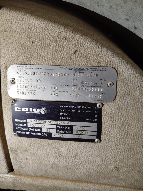 LOTE 011 ÔNIBUS VW/15.190 EOD E.S.ORE ANO 2013
