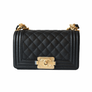 Aba Chanel acolchoada média menino ferragem dourada preta.