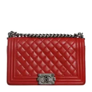 Bolsa Chanel Boy Couro Antigo Vermelho