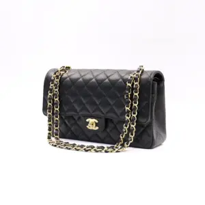 LOTE 012 Bolsa Chanel média clássica couro de bezerro granulado e metal dourado