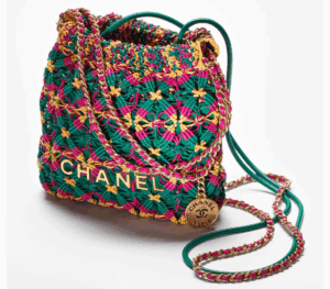LOTE 001 Bolsas Chanel 22 Couro macramé e metal com efeito dourado